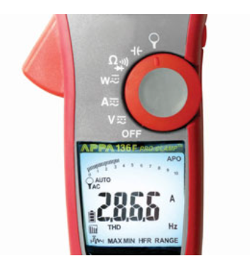 Mierniki cęgowe APPA serii 130F posiadają aktywny podświetlany wyświetlacz,