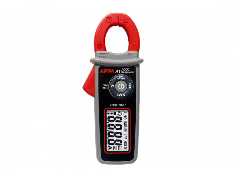 APPA A1 to miernik cęgowy mierzący prąd na zakresach 60A i 300A z dokładnością 1,5%. Do produktu dołączony jest futerał, bateria i instrukcja.