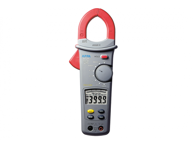 APPA A12R to wielofunkcyjny 4-cyfrowy miernik cęgowy o zakresie prądowym (AC i DC) do 600A. Urządzenie przy zakupie wyposażone jest w futerał, przewody pomiarowe, baterię i instrukcję obsługi.