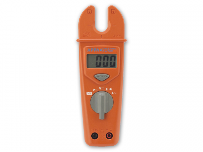 APPA A7D to wielofunkcyjny miernik cęgowy o zakresie prądowym do 200A. Miernik dysponuje 4 cyfrowym wyświetlaczem LCD o maksymalnym wskazaniu 2000. Do produktu dołączone są kable pomiarowe bateria oraz instrukcja obsługi. Producent w swojej ofercie dysponuje też futerałami, które znajdują się w zakładce „Produkty powiązane”.