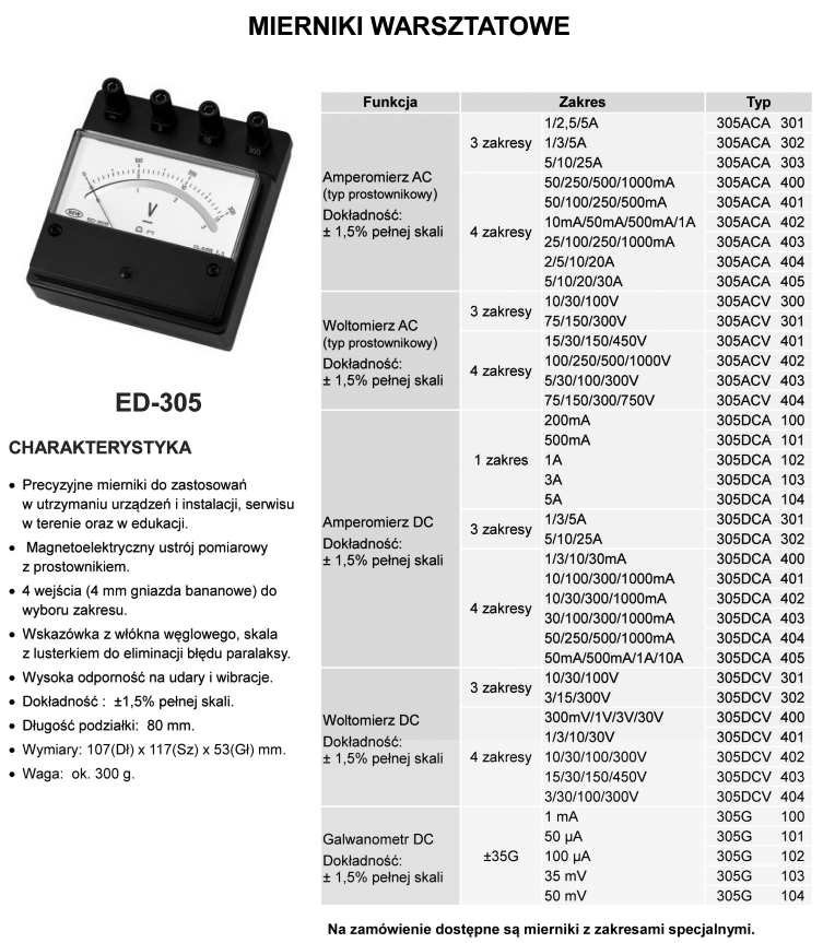 Seria precyzyjnych mierników z magnetoelektrycznym ustrojem pomiarowym.