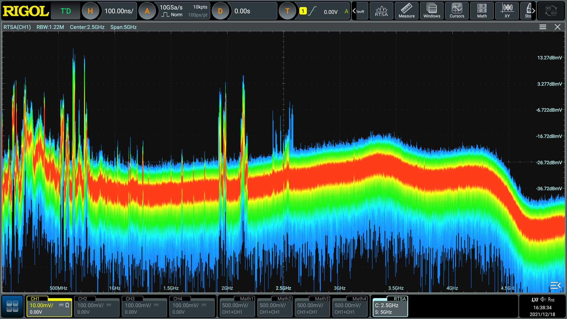 Opcja Real-Time Spectrum Analysis (RTSA) umożliwia pokazywanie sygnałów szerokopasmowych w widmie.