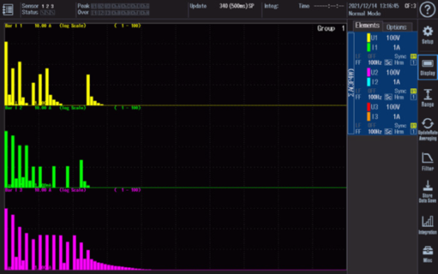 Oceniaj i porównuj harmoniczne na wejściu i wyjściu falowników, silników i kondycjonerów aż do rzędu 500. WT5000 pozwala użytkownikom nie tylko na jednoczesny pomiar harmonicznych i mocy, ale także umożliwia porównanie harmonicznych z dwóch różnych źródeł wejściowych. Efekty szumów i aliasingu są minimalizowane dzięki filtrom antyaliasingowym i filtrom liniowym z technologią Digital Parallel Path, umożliwiając jednoczesną analizę mocy składowych szerokopasmowych i wąskopasmowych. Podczas testu strat bez obciążenia, prąd będzie miał zniekształconą postać z powodu prądów wirowych i histerezy w rdzeniu. Precyzyjny analizator mocy WT5000 – wersja transformatorowa umożliwia pomiar harmonicznych i zniekształceń przy jednoczesnym pomiarze mocy.