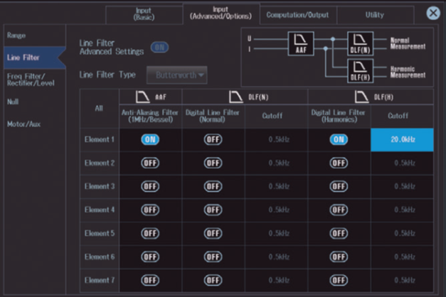 - Cyfrowe filtry ścieżki równoległej: Wspomagane przez filtr antyaliasingowy wysokiej częstotliwości, dwa oddzielne filtry liniowe dla pomiarów normalnych i harmonicznych zapewniają dokładność bez aliasingu przy pomiarach szerokopasmowych i harmonicznych. Użytkownicy mogą ograniczyć liczbę rzędów harmonicznych, aby wyeliminować tłumienie przy pomiarach o niskiej szerokości pasma.