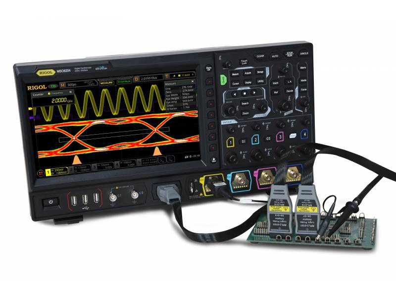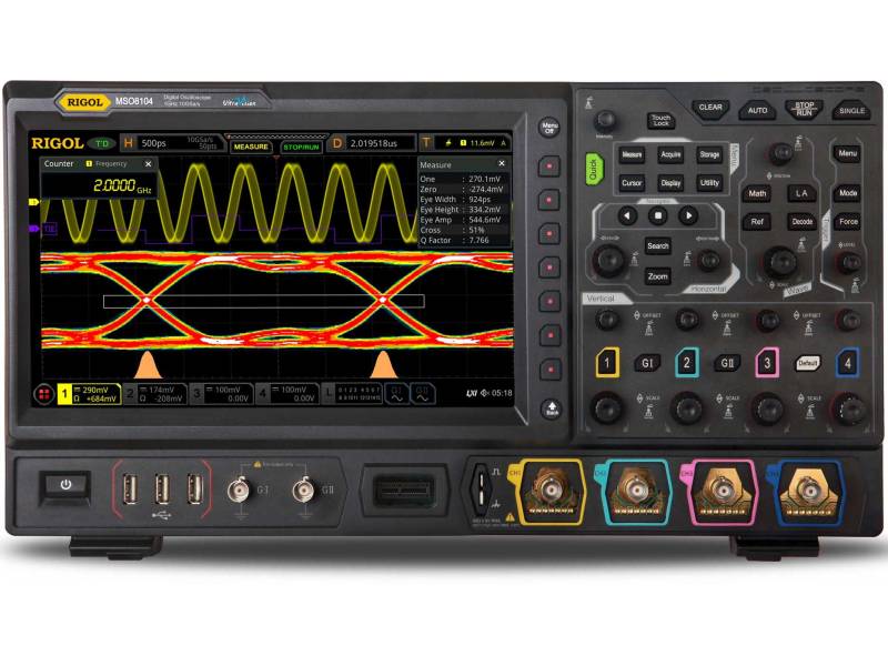 Dzięki modelom 600 MHz, 1 GHz i 2 GHz, każdy z 4 kanałami analogowymi, seria MSO8000 przenosi wydajność RIGOL UltraVision II na nowy poziom stanowiska inżynieryjnego. MSO8000 dodaje także funkcje analizy jittera i analizy oka w czasie rzeczywistym, oprócz innych funkcji UltraVision II, w tym wyzwalania stref, 7 instrumentów w jednym, ulepszonych FFT, gradacji kolorów i histogramów, obsługiwanych przez wysoką częstotliwość próbkowania, głęboką pamięć i pełną pamięć pomiary.