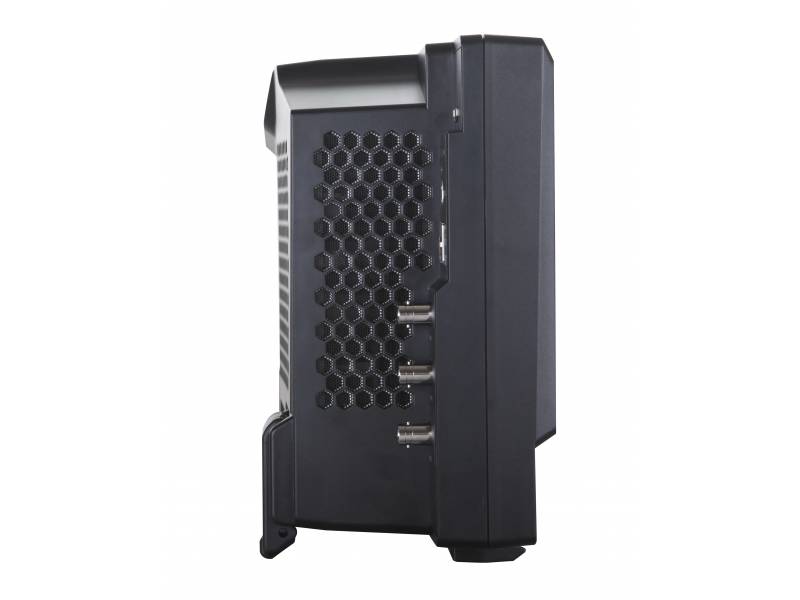 • Pasmo analogowe: 600 MHz (tryby: jednokanałowy i half-channel). • 4 kanały analogowe, 1 kanał zewnętrzny (EXT) i standardowa konfiguracja 16 kanałów cyfrowych (wymagane zamówienie sondy logicznej) • Częstość próbkowania w czasie rzeczywistym do 10 GSa/s. • Pojemność pamięci akwizycji do 500 Mpkt. (w standardzie). • Wysoka częstotliwość odświeżania przebiegów (ponad 600 000 przebiegów/s). • Sprzętowa ciągła rejestracja w czasie rzeczywistym do 450 000 ramek przebiegu z funkcją odtwarzania. • Integracja 7 niezależnych przyrządów w jednym urządzeniu: oscyloskop cyfrowy, 16-kanałowy analizator logiczny, analizator widmowy, generator przebiegów arbitralnych (opcja), woltomierz cyfrowy, 6-cyfrowy licznik częstotliwości z funkcją totalizera i analizatora protokółów transmisyjnych (opcja) • Pomiary automatyczne 41 parametrów przebiegu; sprzętowa funkcja pomiarów pełnej zawartości pamięci akwizycji. • Różnorodne operacje matematyczne na przebiegach, wbudowana zaawansowana analiza FFT, funkcja wyszukiwania wartości szczytowych. • Analiza histogramów przebiegów w standardzie. • Niezależne wyszukiwanie, przyciski nawigacyjne i tablica zdarzeń. • Wykreślanie diagramu oka w czasie rzeczywistym i oprogramowanie do analizy jittera (opcja). • Wbudowane oprogramowanie zaawansowanej analizy mocy (opcja). • Definiowane przez użytkownika szybkie operacje jednoprzyciskowe. • 10,1-calowy, pojemnościowy ekran dotykowy o 256 poziomach jasności i funkcją kolorowej poświaty przebiegów. • Dostępnych wiele interfejsów komunikacyjnych: USB Host i Device, LAN(LXI), HDMI, TRIG OUT i USB-GPIB. • Zdalne sterowanie przez Internet. • Unikalna funkcja aktualizacji oprogramowania firmowego on-line. • Nowoczesny i wysublimowany przemysłowy design, łatwość obsługi.