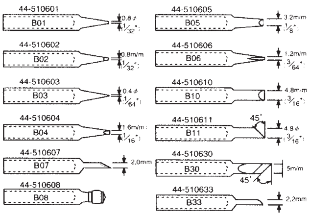 - Dostępny zestaw wymiennych grotów ułatwiających montaż i wylutowywanie elementów w różnych obudowach.