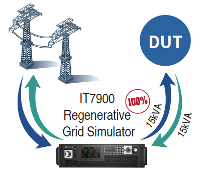 Seria IT7900 to najnowsza generacja programowalnych, w pełni czterokwadrantowych symulatorów sieci energetycznej, zapewniających 100% prądu znamionowego zarówno w trybie źródła, jak i pochłaniacza, z możliwością odzyskiwania energii. Moc generowana przez DUT podczas testu może być łatwo oddawana do sieci AC, zamiast być rozpraszana w postaci ciepła, co chroni środowisko i obniża koszty eksploatacji. Może być stosowany w aplikacjach testowania produktów sieciowych, które wstrzykują energię do sieci, takich jak zmiany częstotliwości, stany nieustalone napięcia i wstrzykiwanie prądu stałego w testach falowników sieciowych.