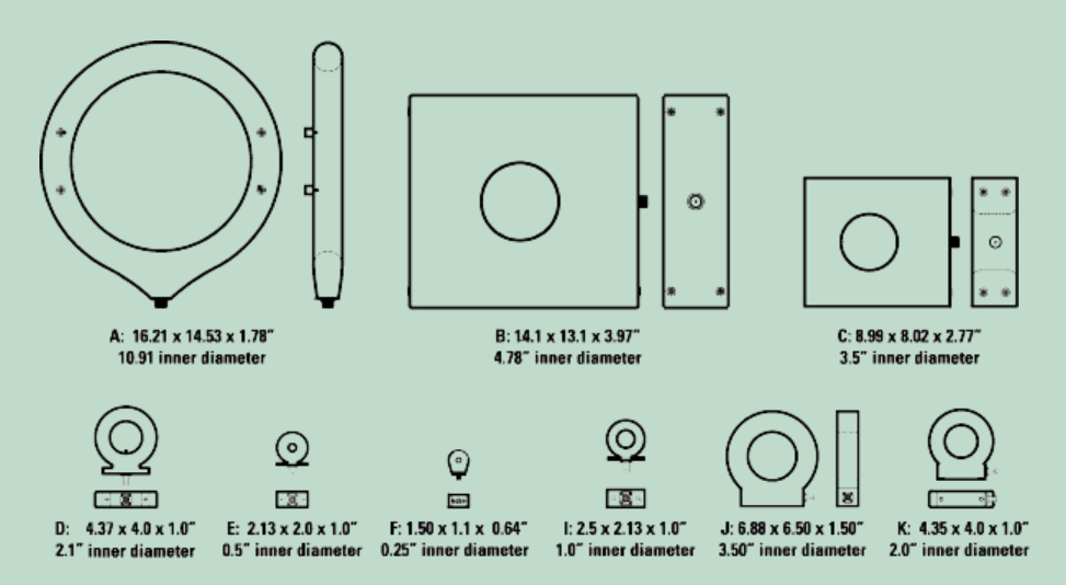 Użytkowy czas narastania (nsek.) | Maks. IT | Maks. prąd RMS (A) | 3 dB pt. Low (Hz) | 3 dB pt. High (MHz) | I/f (peak A/Hz) | ||||