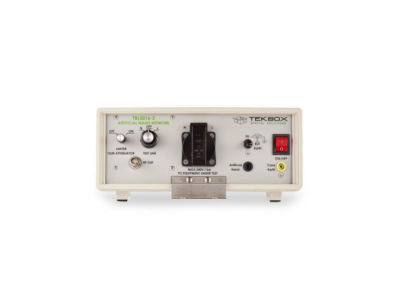 Zaburzenia przewodzone mogą być mierzone na fazie i na przewodzie neutralnym. TBL5016-2 jest wyposażony w przełączany ogranicznik/tłumik oraz gniazdo sztucznej ręki. Urządzenie jest dostępne z wtyczkami dla badanego urządzenia (standard EU)