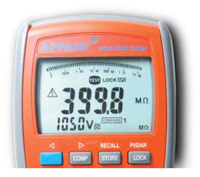 APPA 605 to tester izolacji z dużym wyświetlaczem LCD o maksymalnym odczycie 4000. Urządzenie umożliwia pomiary do 20GΩ przy napięciu 1000V. Do produktu dołączone są kable pomiarowe, końcówki „aligatorki”, baterie, sonda aktywna i poręczny pasek magnetyczny – kompatybilny z większością przenośnych urządzeń.