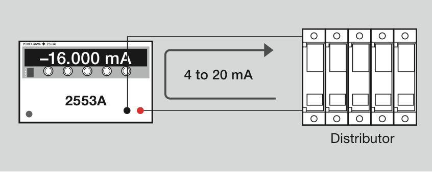 W zakresie 30 mA, 2553A może pobierać prąd. Na przykład, pobierając prąd z dystrybutorów, może symulować dwuprzewodowe nadajniki, które wysyłają sygnały od 4 do 20 mA.