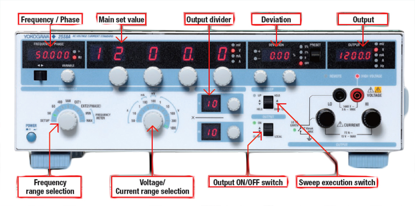 System kalibracji mocy można utworzyć za pomocą dwóch 2558A (po jednym dla napięcia AC i prądu AC) wraz z analizatorem mocy Yokogawa WT3000 jako odniesieniem.