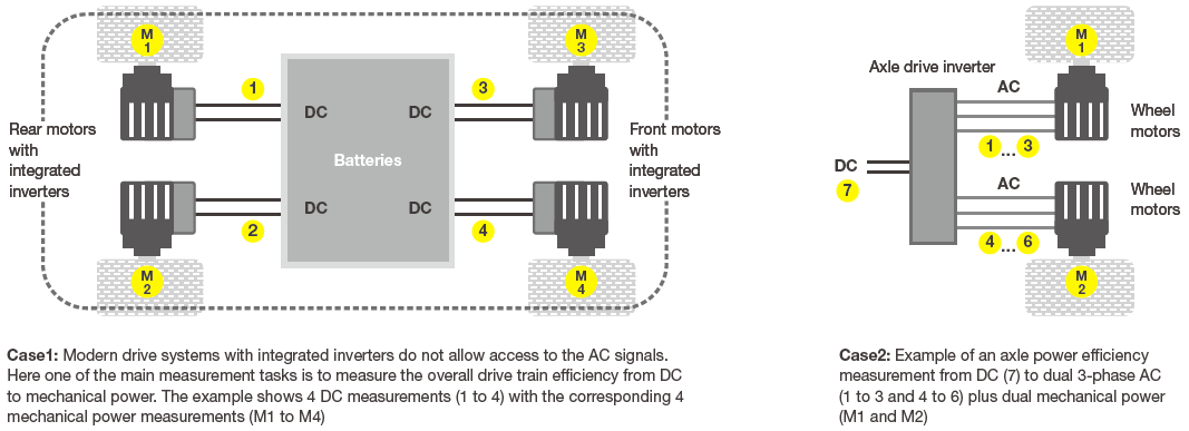 Przegląd Straty w elektrycznym układzie napędowym pochłaniają od 16 do 18% całkowitego ładunku samochodu elektrycznego. Producenci samochodów elektrycznych i hybrydowych muszą zatem dokładnie ocenić sterowanie silnikiem i falownikiem, aby osiągnąć większą precyzję i wydajność. Ponadto dokładna analiza przebiegów falownika bez zakłóceń spowodowanych szumami przełączania jest kluczowym elementem oceny obwodu napędu silnika. Kluczowe wymagania: Pomiary wielofazowe z akumulatora, falownika i silnika Ocena charakterystyk silnika, takich jak moment obrotowy, prędkość i kierunek obrotów, poślizg i kąt elektryczny. Charakterystyka ładowania/rozładowywania akumulatora Analiza harmonicznych sygnałów falownika przy różnych prędkościach obrotowych